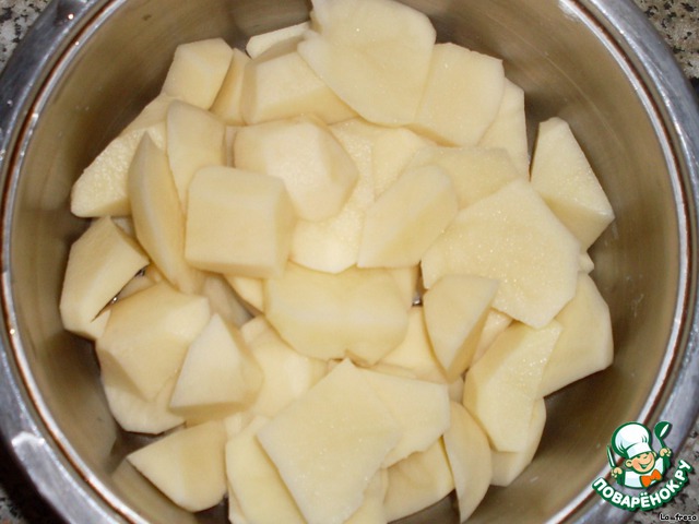 - Картофель (какой-нибудь "сухой" сорт, у меня слишком клейкая была, плохо лепилась) — 3 шт