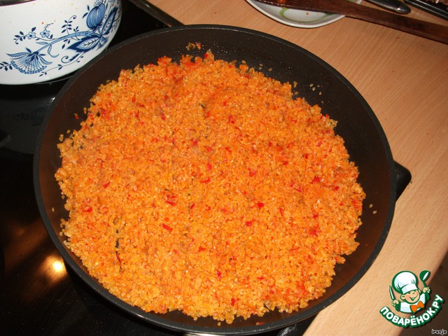 Если зерна пшеницы обработать паром, высушить, очистить от отрубей, а затем размолоть, получится крупа булгур, в которой сохранена большая часть питательных веществ пшеницы. С давних пор булгур распространен в кухне восточных народов. На сайте похожего рецепта не нашла. Поэтому выставляю его на ваш суд.