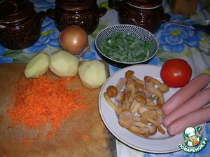 Kушать хочется.. Замачиваем горшочки водичкой (пусть постоят - меньше жидкости в себя впитают при готовке). Тем временем, заглядываем в холодильник и достаём всё, что нашли :). Вот, что я обнаружила.