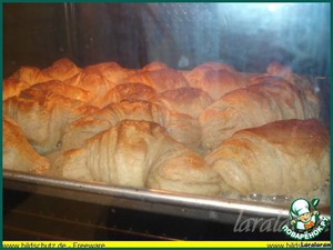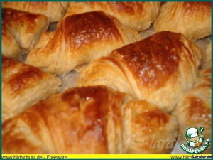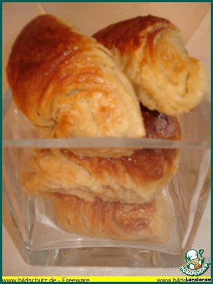 По словам Р.Бертинета (известный французский пекарь, из его книги взят рецепт) существует много видов круассанов во Франции: кондитеры пекут их совсем воздушными и нежными, а пекари немного "солиднее", "хлебнее"… Бертинет предлагает именно такой рецепт - он отлично сочетается как со сладким, так и с любыми другими вкусами...