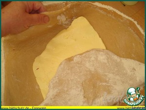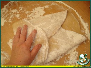 Теперь сложить так - одну треть теста к середине, накрыть второй третью теста... и снова имеем пакетик. -