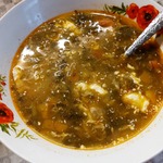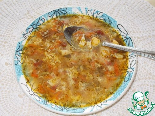 По мне лишняя только мука, так как бульон стал "плотным ", все остальное очень хорошо сбалансировано. И почему-то после добавления яйца стал мутным.