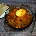 А с яйцами я поступаю так: 1 - варю и крошу мелкими кубиками в борщ, а 2 – взбиваю с солью в чашке и постепенно ввожу в борщ так, чтобы получились кружевные нити.