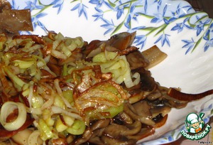 Грибы порезать ломтиками, лук-порей - тонкими кольцами