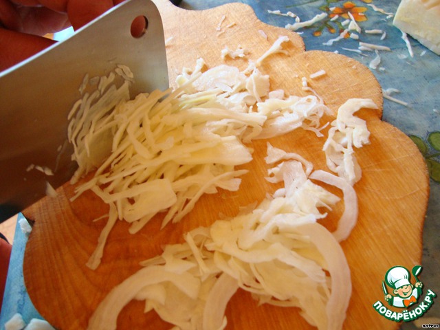Пока подготовить продукты - капусту нашинковать соломкой, картошку порезать брусочками или соломкой, кому как нравится, морковь натереть на терке или нашинковать мелкой соломкой, лук - полукольцами.