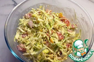 Все ингредиенты выкладываем в миску с соусом и как следует перемешиваем. Пробуем еще раз и при желании добавляем соль, перец или лимонный сок. Ставим в холодильник минут на 5-10 перед подачей на стол!