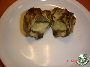 Из духовки вынимаем почти обгорелую, но это не страшно, ведь наружные лепестки жесткие, не съедобные, их надо удалить. Съедобная только внутренняя часть бутона, где-то 10-15%.