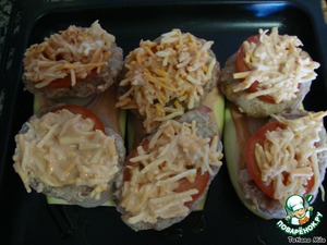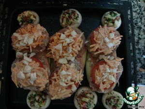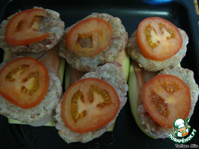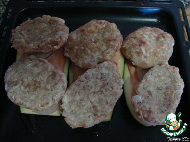 Кладем на каждую дольку баклажана по 2 котлетки.