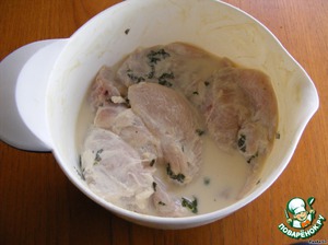 Для маринада смешать мед, йогурт и мелко порубленную мяту, опустить грудку и хорошо перемешать. Оставить мариноваться часа на 3, но лучше на 10 -12. Я мариную с вечера.