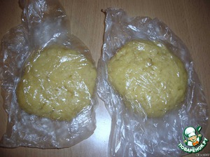 масло разломать (разрезать) на кусочки, положить на муку. Всю массу порубить ножом, до однородности. Добавить яйцо, далее руками замесить тесто, разделить на две части, обернуть плёнкой, убрать в холодильник, примерно, на 2 часа.