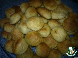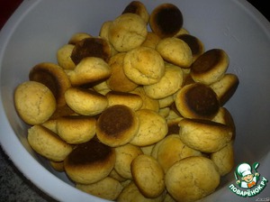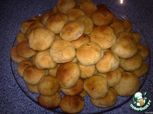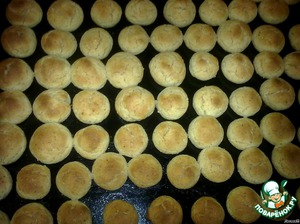 • Из полученной массы скатываем маленькие шарики, размером с крупную вишню. Работы много. Шариков получилось на полтора противня.