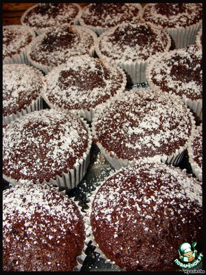Готовые кексики посыпаем сахарной пудрой.