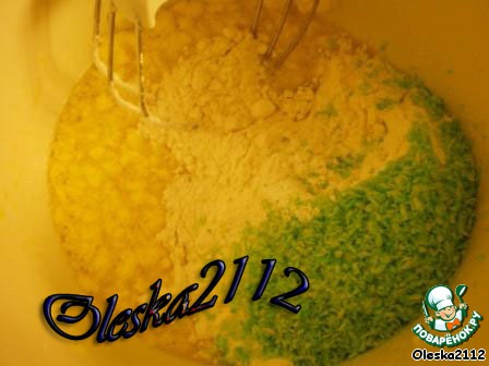 В миске смешиваем муку, соль и разрыхлитель. В другой ёмкости взбиваем миксером масло сливочное, яйца и сахар до побеления. Добавляем мучную смесь из первой миски и молоко, взбиваем. Вводим в тесто лимонную цедру и кокосовую стружку. Всё тщательно перемешиваем. -