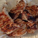 Маринуем мясо в лимонном соке с большим количеством различной зелени, в данном случае репчатого лука кладется немного.