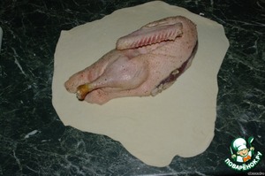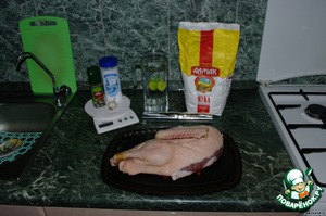 Чеснок пропустить через чеснокодавку, смешать с солью и перцем, и этой смесью натереть гуся.