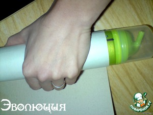 Тем временем находим себе занятие:-) Из картона крутим цилиндрики, помогая себе подручными средствами. Мне очень пригодился баллончик лака для волос:-) Затем закрепляем наши «валики». Можно степлером. Но я обмотала швейными нитками.