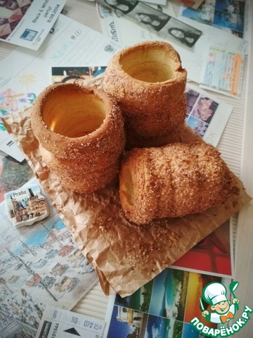 Да-да. Именно трдло. И это не опечатка:-) Трдло – это сладкая булочка в форме цилиндра с дыркой посередине. Выпекается на металлических (а ранее – буковых) основах путем наматывания на них полосок теста по спирали. Кроме того, «трдлом» чешские мамы называют шаловливых неугомонных деток, сравнивая их с «веретеном». В переводе «трдло» - «бестолочь», «балда». На конкурс «Новогодние вкусы планеты».