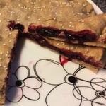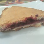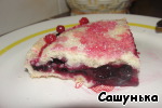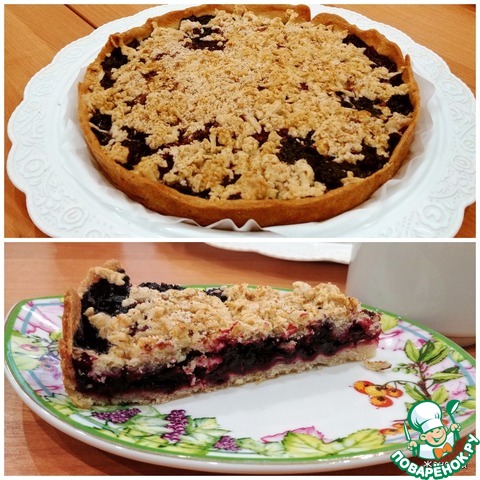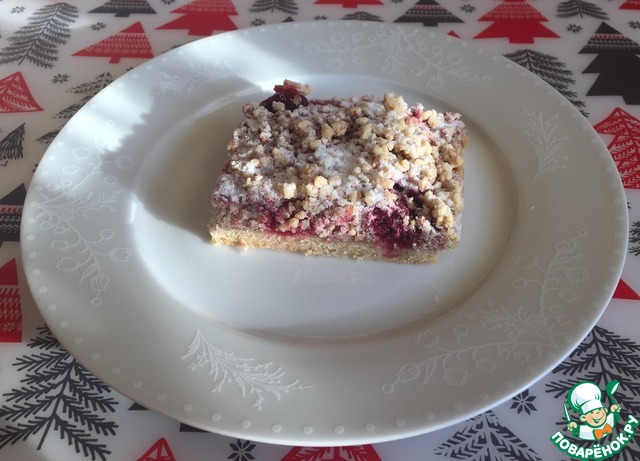 Вчера сделала с вишней, но уже кое-что изменила: в начинку положила крахмал (почитала предыдущие комменты), после замеса теста, разделила его примерно пополам. Большую часть в холодильник, а кусочек поменьше в морозилку. Через час раскатала тесто из холодильника и выложила начинку. Затем тесто из морозилки натерла на мелкой тёрке, перемешала получившийся штрейзель с измельчённым миндалём и распределила сверху пирога. После того, как готовый пирог остыл, присыпала пудрой.