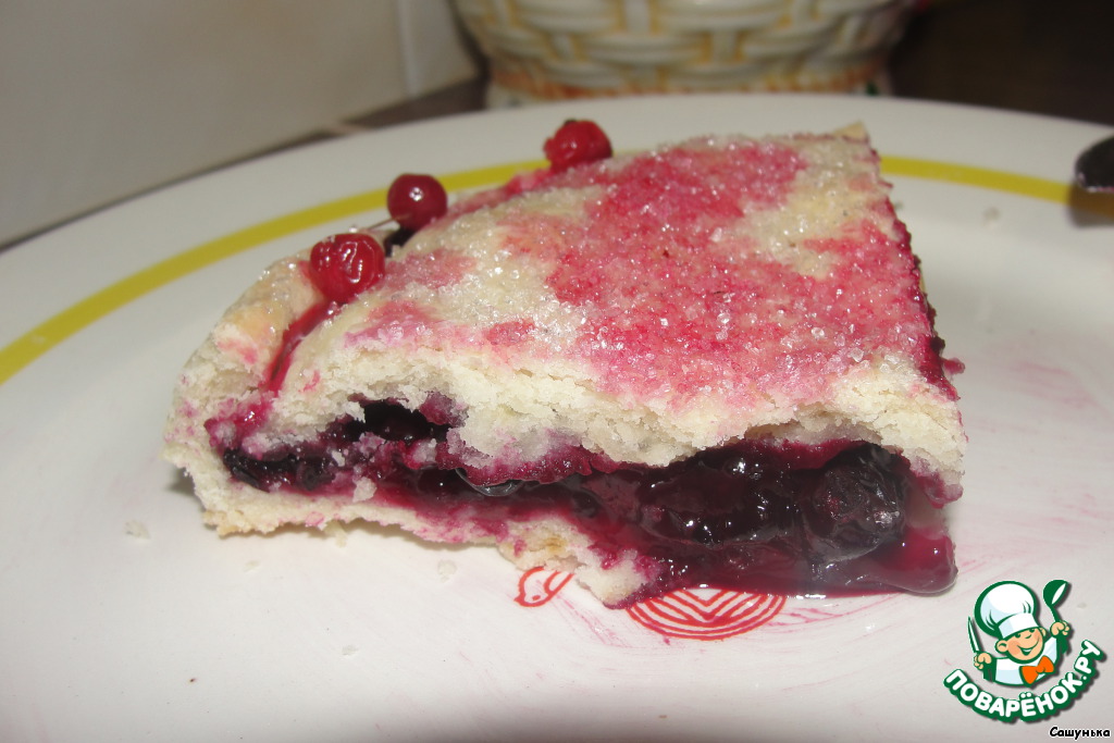 Рецепт теста позаимствовала на сайте "Готовим дома" у Олеси, немного переделала, пирог получается очень ароматным, тесто немного хрустящее, начинку можно делать с яблоками или с другими любыми ягодами, а так же с густым вареньем. Рецепт рассчитан на маленькую форму, размером 19 см.