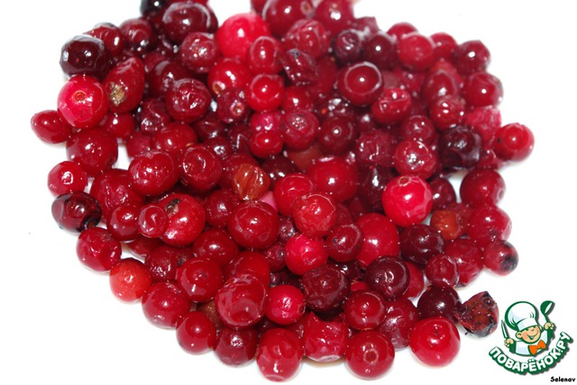 У меня не было клюквенного сока. Я размяла клюкву - получился сок с мякотью.