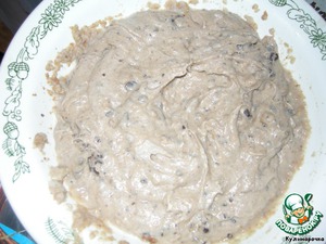 Печенье разломать на кусочки и добавить молоко, чтобы печенье немного размякло. Добавить сырки и все перемешать.