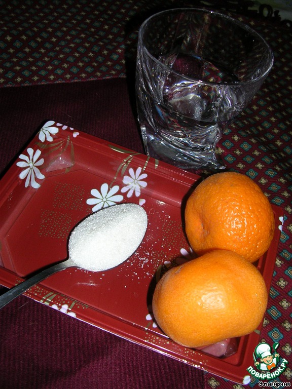 Дольки мандарин окунуть в горячий сахарный сироп-оставить минут на 15. Откинуть на сито, дать подсохнуть. -
