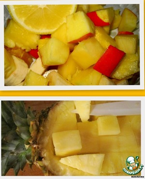Нарезать фрукты небольшими кубиками (1.5х1.5 см).