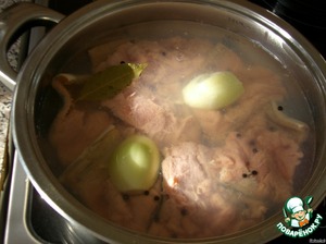 Сложить в большую кастрюлю (чтобы вся рыба поместилась в один ряд), залить горячей водой так, чтобы вода была выше рыбы на 3 см, добавить луковицу, перец черный горошком, лавровый лист, посолить. Варить на медленном огне 20 минут.