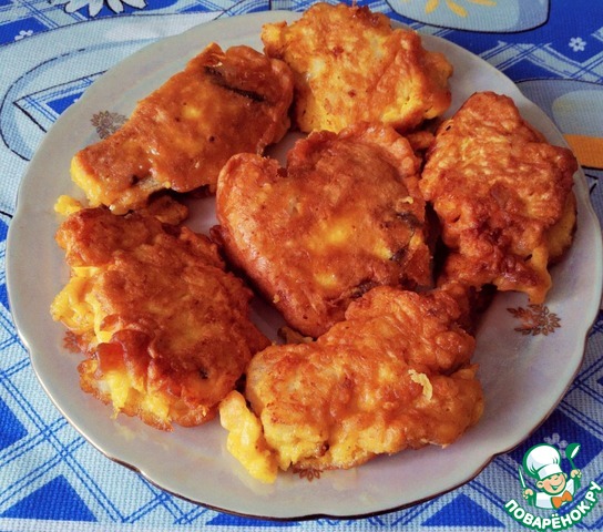 Белки взбить миксером до пены, в миску с мукой постепенно аккуратно вмешивать взбитые белки, кляр готов.