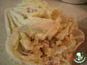 Капусту разрезать и немного раскрыть листочки.