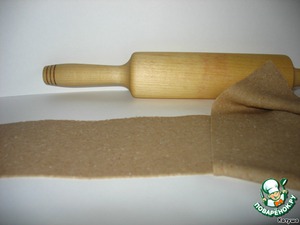 Раскатаем тесто в тонкий пласт. Правильное тесто не прилипает ни к столу ни к скалке. Если у вас не так, добавьте муки на стол и на скалку.
