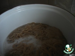 Вскипятим воду, добавим соль (если будем есть без соевого соуса), варим 1-2 минуты. Тосикоси соба на новый год подается без бульона, поэтому после варки её промывают. В обычные дни, если соба подается в бульоне, то промывать не стоит. Бережливые японские хозяйки воду в которой варилась соба не выливают, а используют для приготовления других блюд, т.к в отвар уходит до10% полезных веществ.