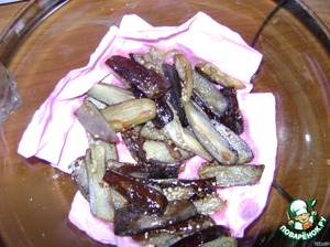 • Баклажаны замороженные жарим на растительном масле и выкладываем на салфетку.