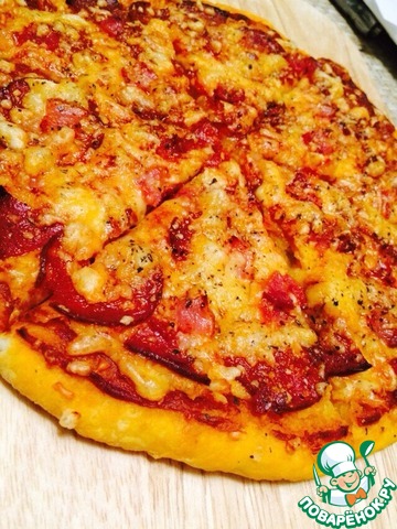 Тесто очень тонкое получается, а пицца - очень сытная))