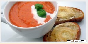 Украсить листочком базилика и сливками. Подавать с тостами.