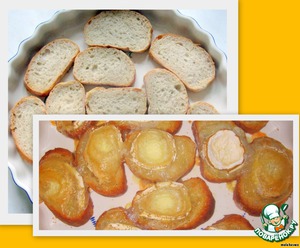 Нарезать кусочки белого хлеба, сбрызнуть их оливковым маслом и поставить в духовку.