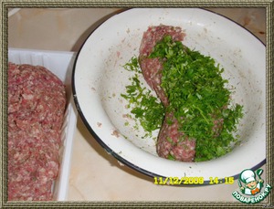 все смешать с мясным фаршем (у меня говядина + баранина) -