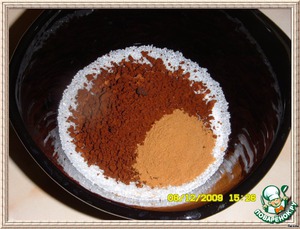 В маленькой чашке смешать 1/3 стакана сахара + 2 ст.л. кофе + корица. -