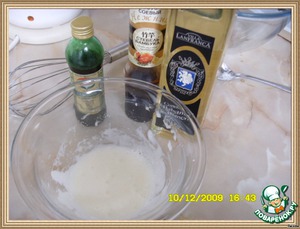 Кунжутное масло, соевый соус и рисовый уксус (заменила на бальзамический, не выдержанный уксус), хорошо перемешать.