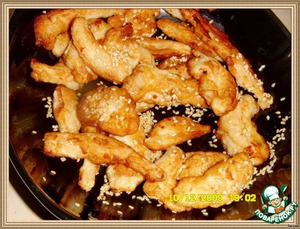 Нежнейшие куриные грудки, порезанные соломкой, с кунжутом. Люблю китайскую кухню за ее простоту, пикантность. Спасибо Виточке-belochkavita за рецепт.