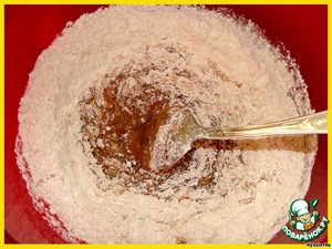 добавляем муку (у меня Dinkelmehl, поэтому печенье не белое) и разрыхлитель, замешиваем тесто.