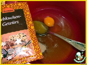 - Корица (+ кардамон, гвоздика, мускатный орех. имбирь - на кончике ножа или готовая смесь пряностей Lebkuchengewuerz - 2 ч.л.) — 1,5 ч. л.
