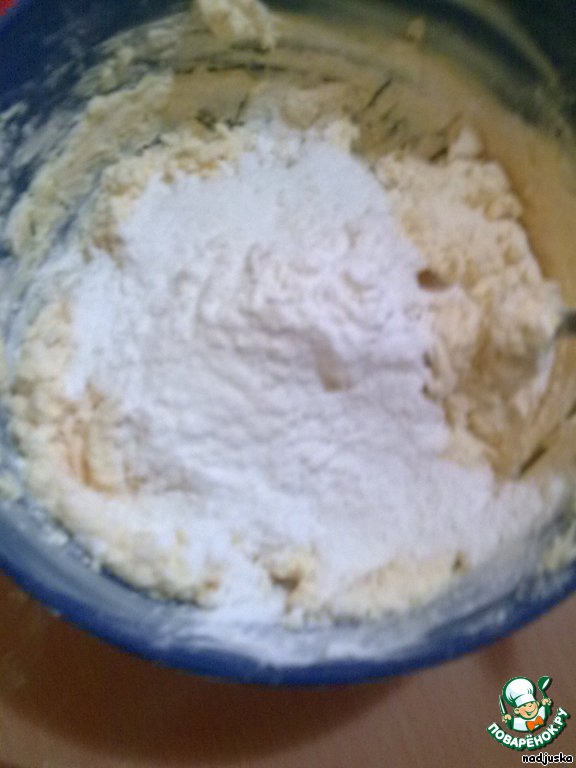 В эту массу постепенно добавить 3 стакана муки.
