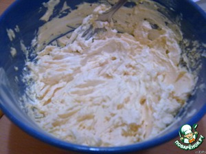 Сварить яйца и отделить желток. Затем растереть желтки с 250 гр маргарина и добавить 3 ст.л. сметаны