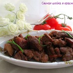 Достаточно простой, но очень вкусный рецепт приготовления мяса. Мясо очень нежное, несмотря на полученный цвет. Вино изменяет цвет мяса. Готовила на пробу, и пожалела, что мало получилось. Спасибо за рецепт rusha.
