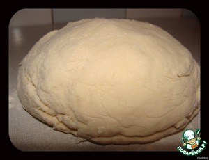 Постепенно подсыпая муку, вымешиваем густое тесто. Скатываем его в шар и, прикрыв опрокинутой миской, оставляем для «созревания 10-15 минут.