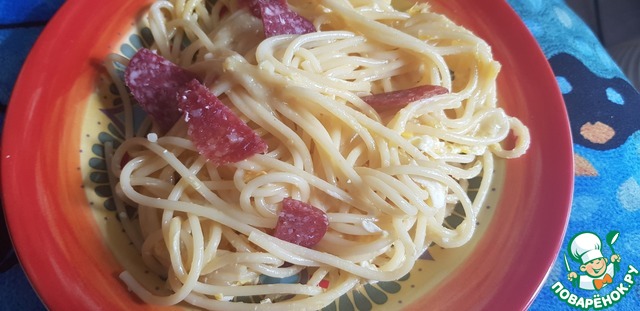 Рецепт «Макароны с колбасой и яйцами»: