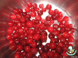 Пока утка печётся, приготовим соус. Для этого разминаем клюкву (блендер или просто толкушка - на Ваше усмотрение. Я люблю просто размять толкушкой, чтобы не совсем однородное состояние было у клюквы, люблю даже целые ягодки оставлять).