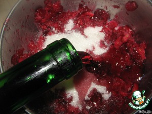 И вино. Ставим всё это на огонь и варим до закипания, потом ещё минутки две, не больше, даём покипеть. Сначала я с недоверием отнеслась к этому соусу, так как привыкла из клюквы делать немного иначе соус к мясу. Я всё делаю так же, только вместо вина добавляю соевый соус. Соус получается пикантный. Здесь же я боялась, что будет просто сладко. Но мои опасения оказались напрасными, соус отличный получился.