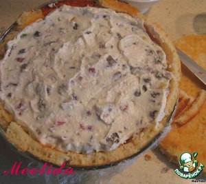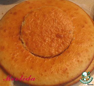Сверху выкладываем вырезанный большой круг - основание торта, слегка прижимаем его руками, накрываем пленкой и отправляем в холодильник до утра... где-то часов на 6